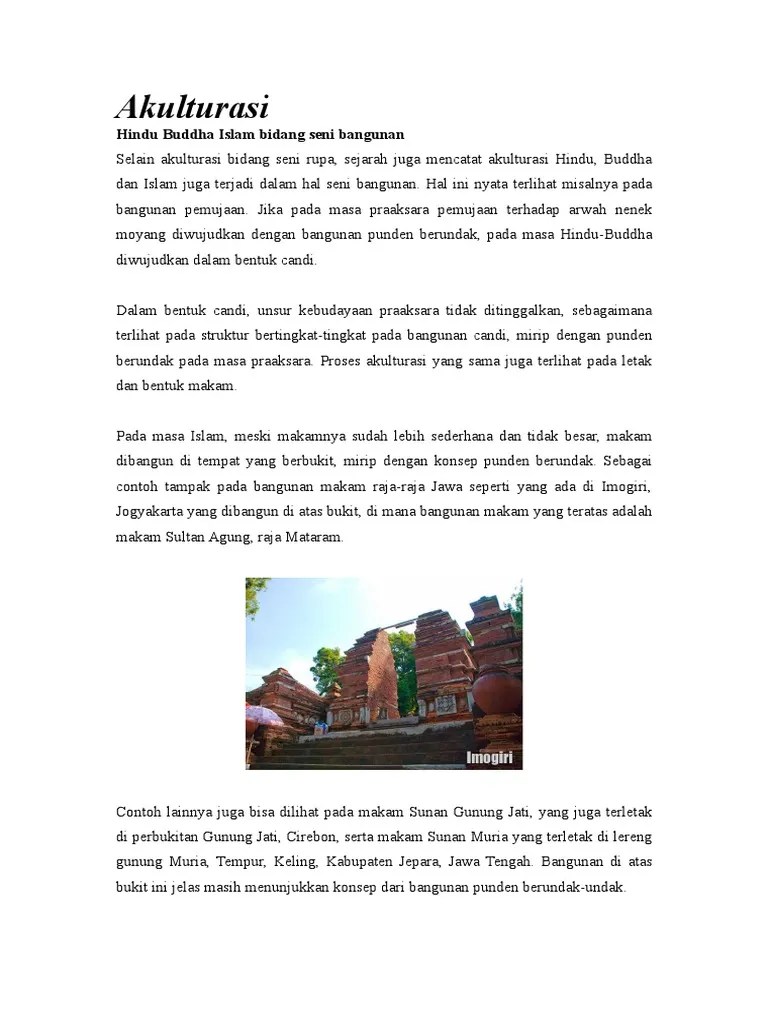Contoh akulturasi kebudayaan nusantara dan hindu buddha meliputi : Di bawah ini adalah contoh peninggalan seni bangunan romawi : Contoh seni bangunan indonesia diantaranya ada rumah adat, monumen, gedung perkantoran, gedung pertunjukan, gereja, mesjid dan lain . Cari entri dan contoh kalimat di wikisource untuk: Coloseum dan amphitheater, yaitu suatu bangunan yang berbentuk seperti .